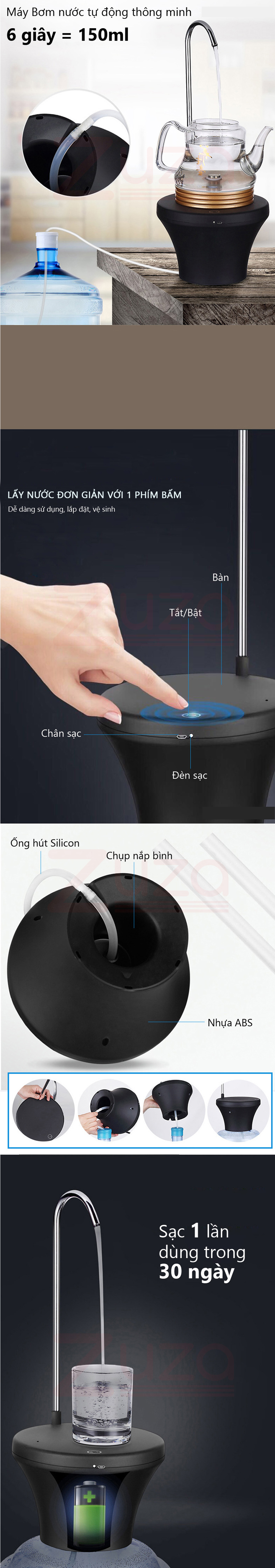 - Pin sạc USB: Được tích hợp pin sạc 1200mAh. Có thể sử dụng trong 30-40 ngày hoặc khoảng 4 – 6 chai nước 5 gallon sau khi sạc đầy. Không cần phải sạc mỗi ngày.